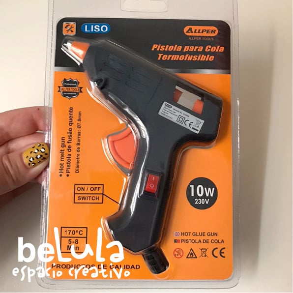Pistola termofusible pequeña de baja potencia (10W), con punta metálica y de color amarillo. Ideal para derretir barras de lacre o silicona de 7'5mm de diámetro de una forma cómoda y limpia, conectándola a la corriente eléctrica. Enchufe estándar europeo de 110V-230V. Es perfecta para hacer grandes cantidades de sellos para bodas u otros eventos, trabajos de scrapbooking, o cualquier otra manualidad.